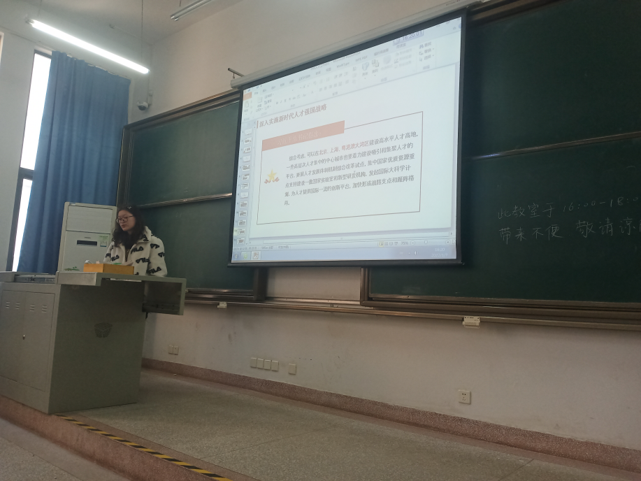 随后,范艺洋为大家介绍了习近平同志在中央人才工作会议上的讲话精神。她指出,总书记的发言高屋建瓴、内涵丰富,科学地回答了新时代人才工作的一系列重大理论和实践问题,具有很强的政治性、思想性、指导性和针对性。我们要培养的是能立足中华民族伟大复兴战略全局的、合格的社会主义建设人才。心怀“国之大者”,方能把握大势,敢于担当,善于作为,为服务国家富强、民族复兴、人民幸福贡献力量。