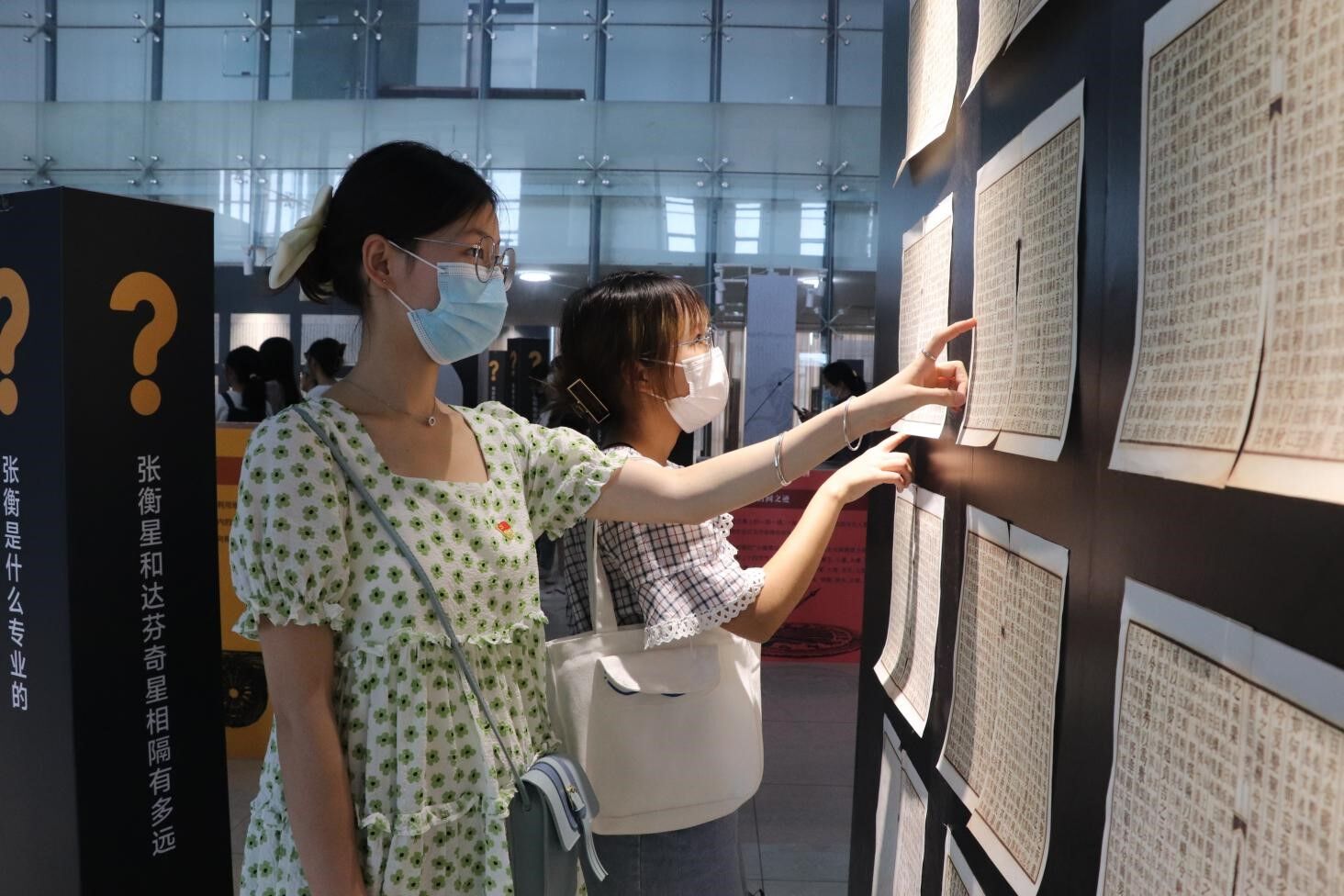 5月31日上午,行政教工党支部与英语本科生第二党支部在图书馆五楼汇雅书邨开展师生结对共建活动,在讲解员黄渡海老师的带领下共同参观了“与张衡和达芬奇对话”科学与艺术主题文献展。